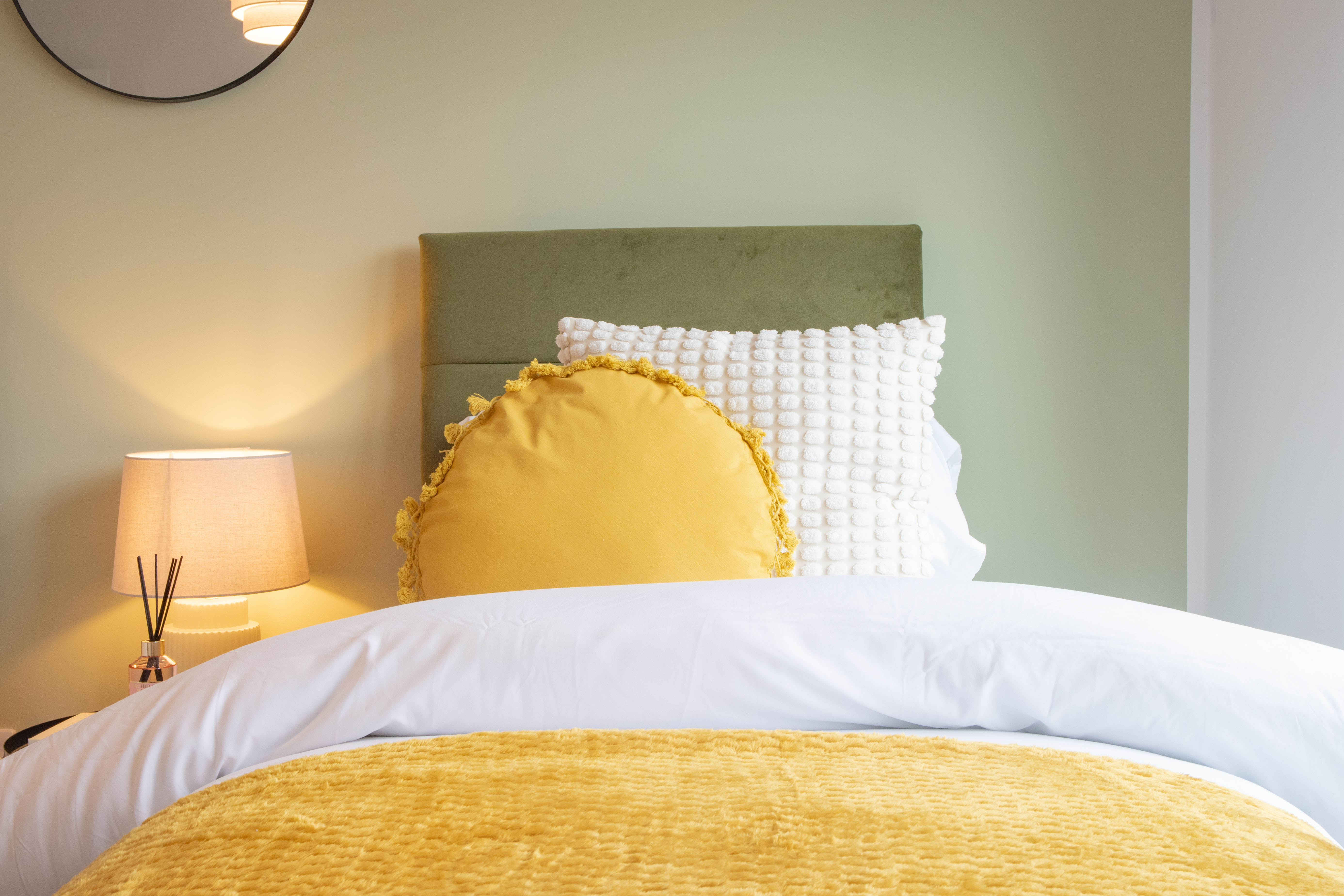 A sunny, colour-forward two-bed in Liverpool — warm, practical and great for longer corporate stays. Photographed with energy and character to make it feel fun, bright and easy to live in.